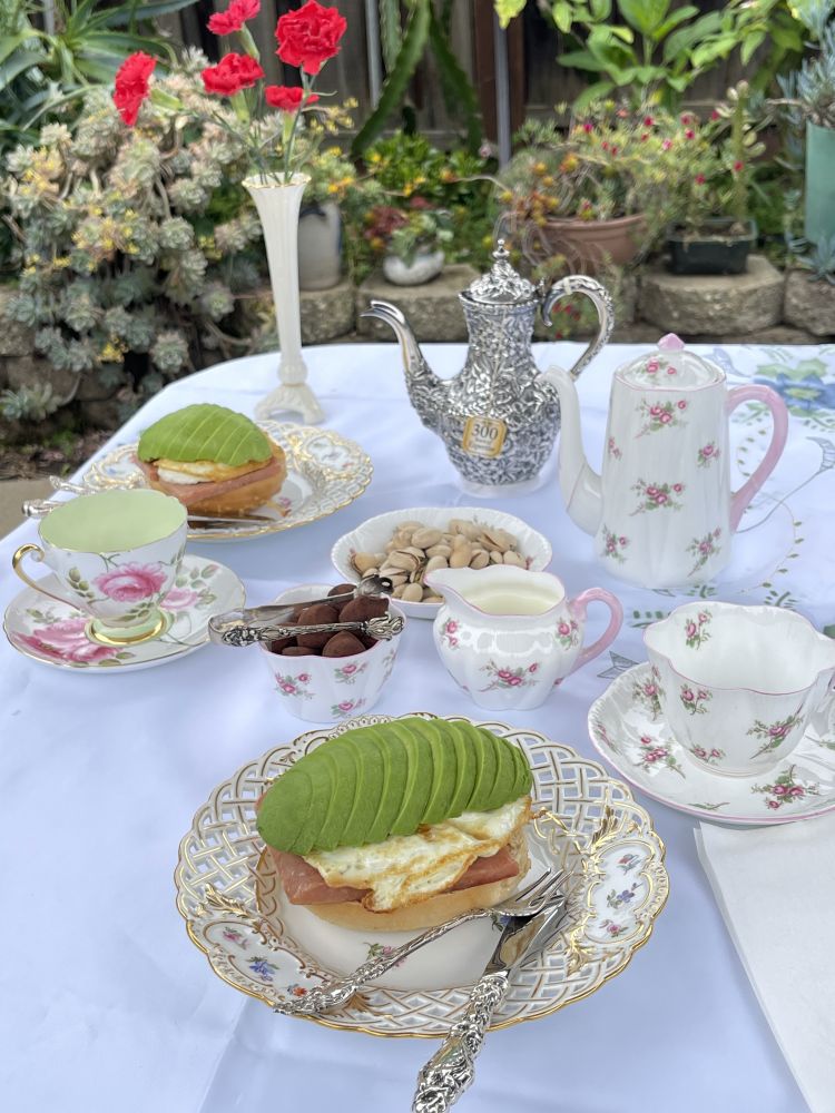 工作日不想起,周末反而睡不着,起来院子里喝茶吃早餐。一壶咖啡一壶茶,慢节奏的周末空巢日子