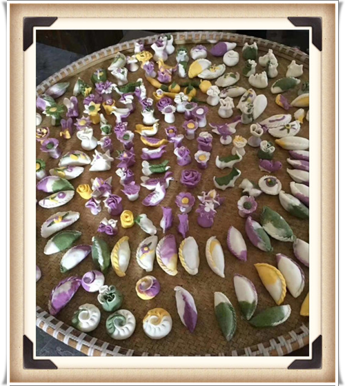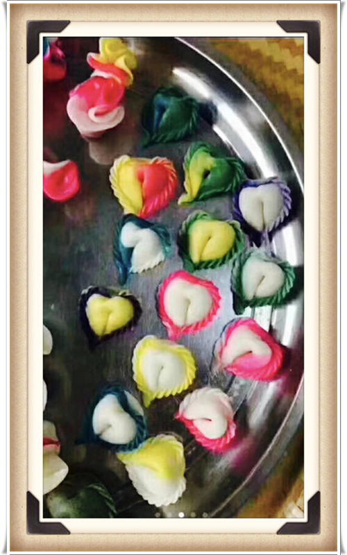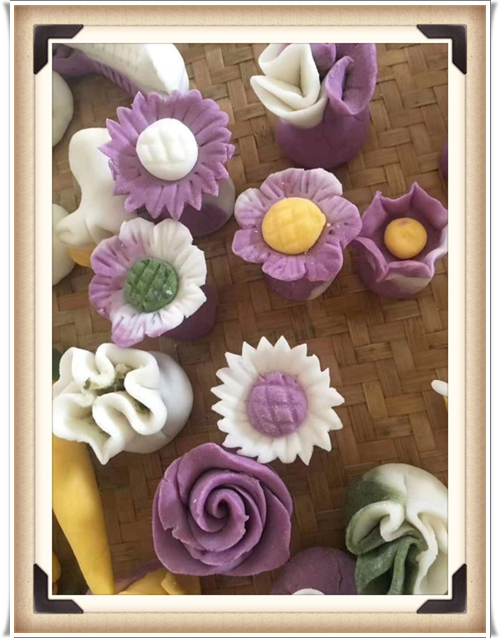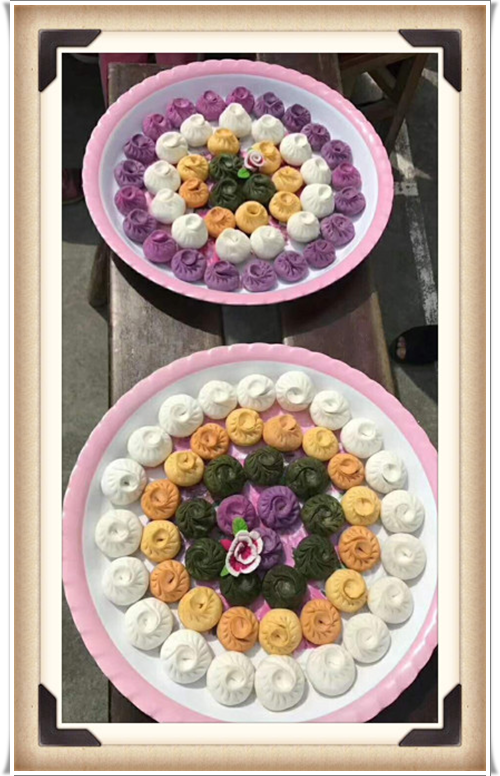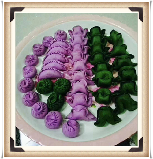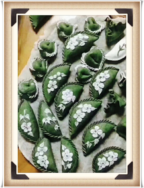 清明节时节,故乡堂弟发来了一组照片,是故乡河上镇妇女们搞的民俗活动——各显身手包清明团子。看着乡亲们亲手包出来的这些色彩缤纷、形态各异的点心,紫薇大饱眼福的同时,绝不敢私藏,为它们配上相框,放入紫薇花园展览,供走过路过的朋友们驻足欣赏!