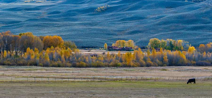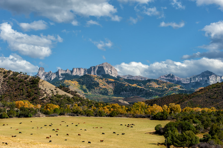 九月底十月初是科罗拉多秋景正盛的时节。我们去的时候, 除了偶尔有有短暂的乌云密布外基本都是好天。蓝天白云,高原牧场,牛羊壮,白桦黄,一路上都是让人赏心悦目场景。