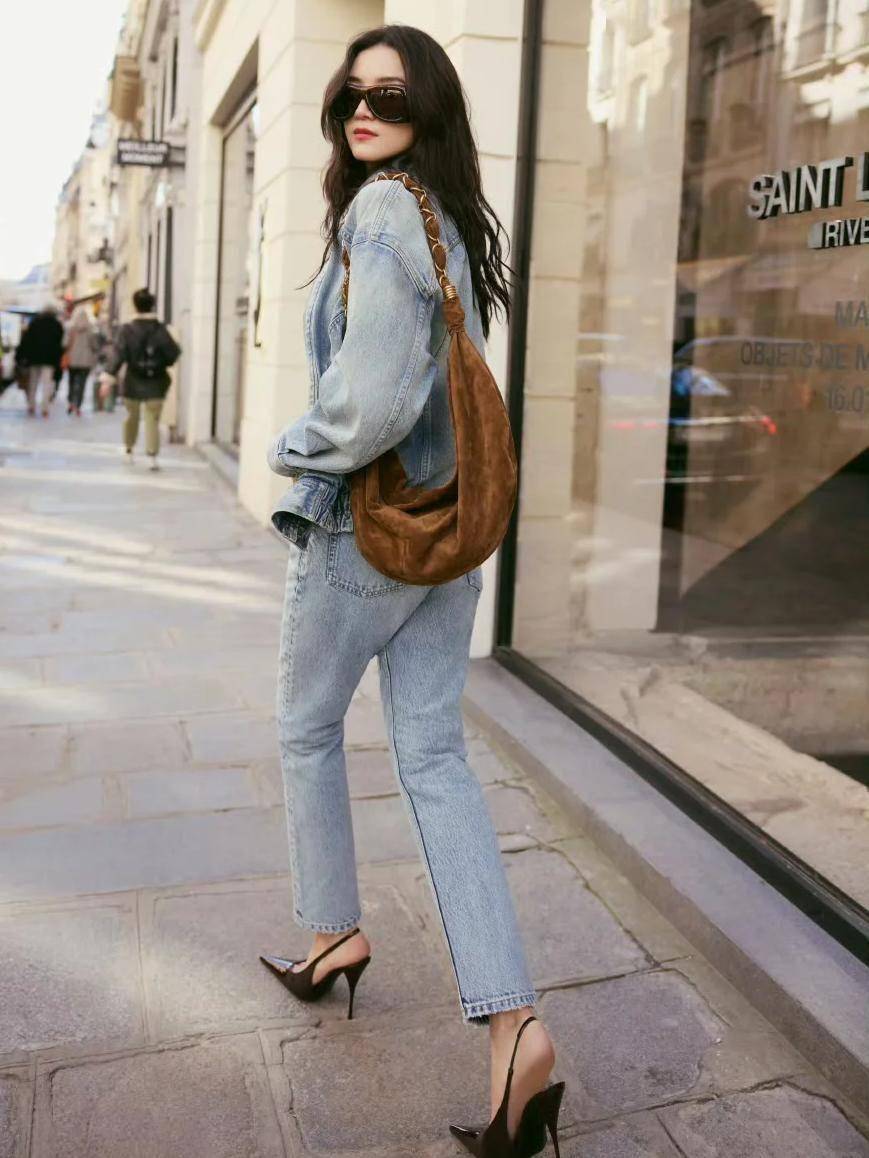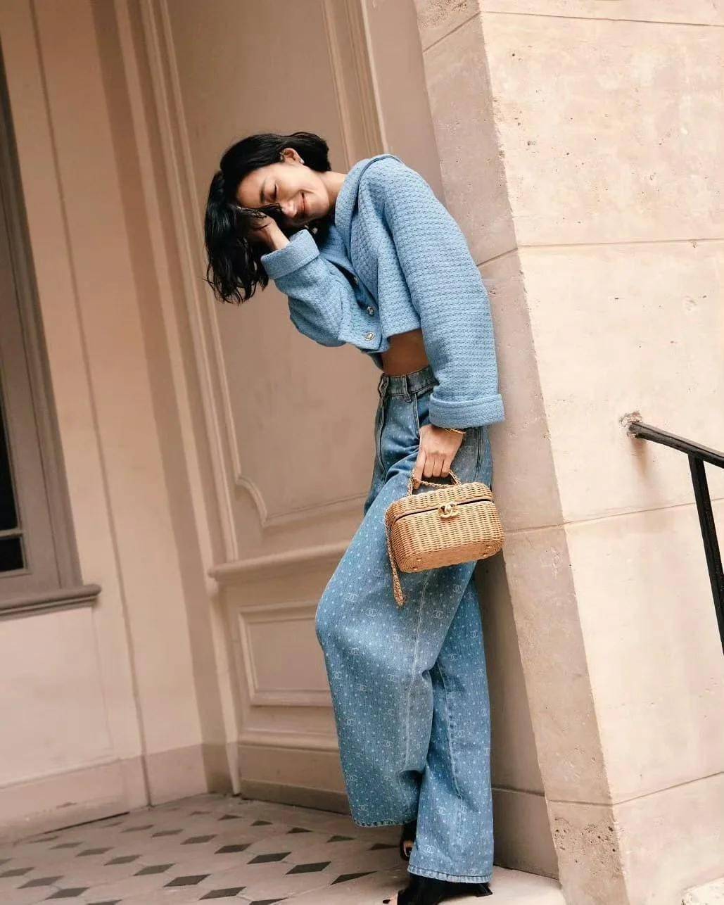 比起单品混搭,一整套牛仔套装更具复古氛围,牛仔衬衫+牛仔半裙、牛仔外套+牛仔直筒裤,随性利落,复古感浑然天成。