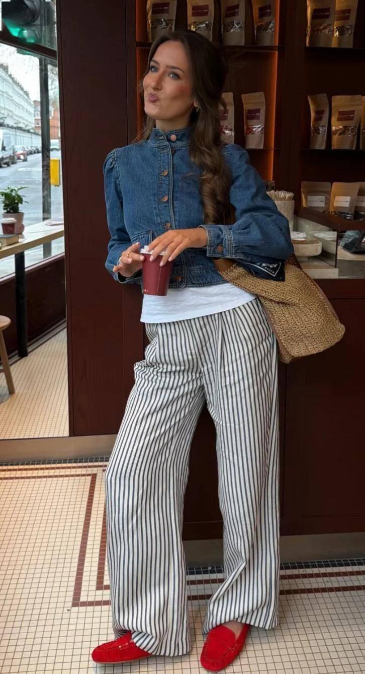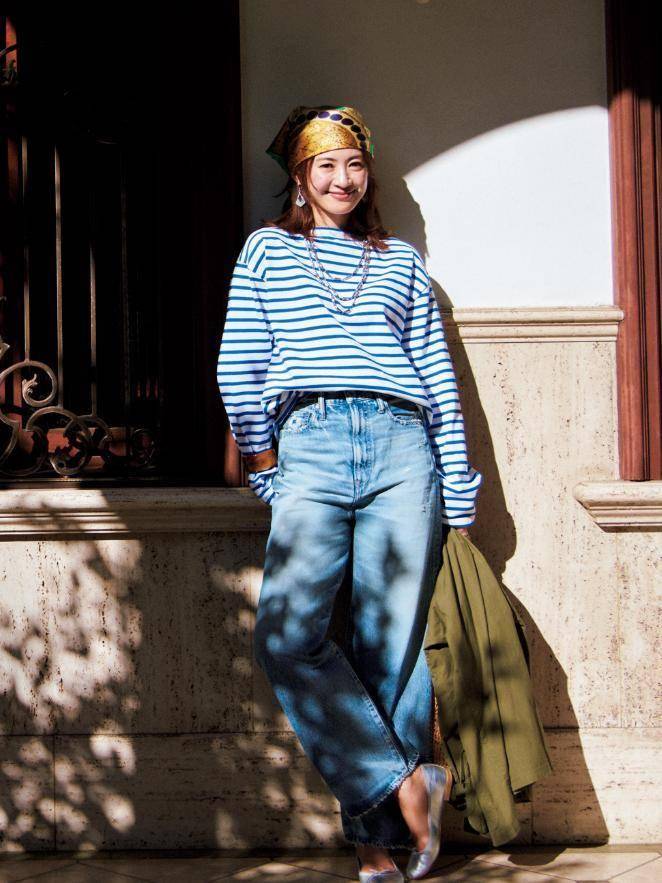 细条纹温婉柔和,宽条纹利落大气,搭配经典牛仔裤,是跨越年代的万能组合,度假慵懒、通勤得体,轻松适配各种场景,越简单越有味道。