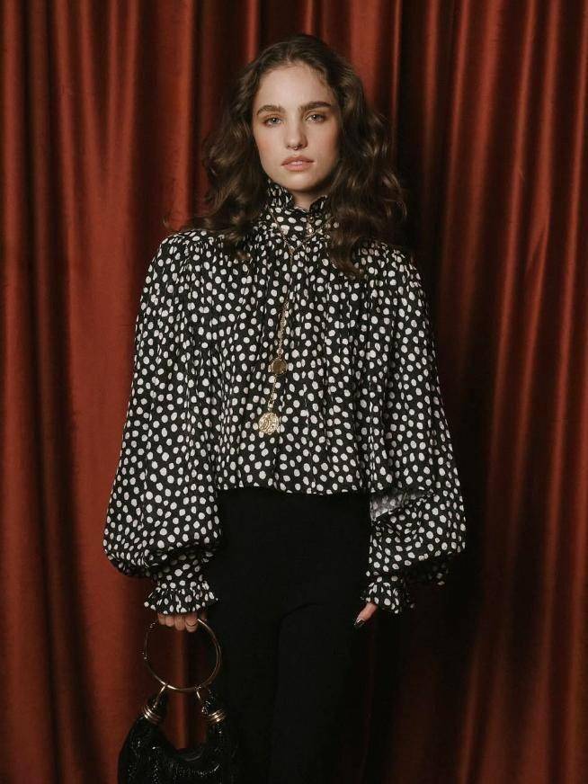 今年的波点单品更注重细节改良,微垫肩修饰肩线、灯笼袖增添柔美、腰部捏褶优化比例,让基础波点更有层次。