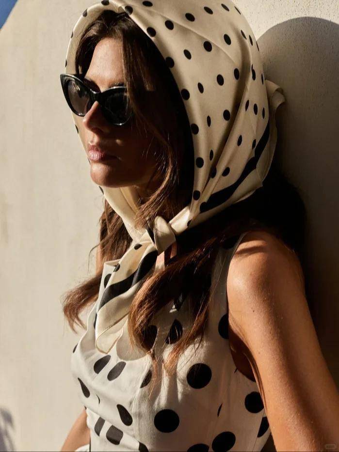 搭配小丝巾、露出锁骨留白,细节加持更显精致,让复古质感更高级。