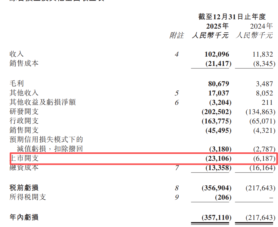 然而,年内净亏损达3.57亿元,较2024年的2.11亿元同比扩大68.26%,亏损扩大主要是受非经常性费用与研发高投入双重影响。其中,股权激励费用1.84亿元,上市费用2310.6万元,如果剔除这部分费用,旺山旺水2025年仍亏损约1.5亿元。