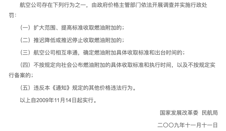 2009年,为了让国内航空煤油价更好地和国际油价协调,民航局和发改委重新设定了一套完整的燃油费规则。