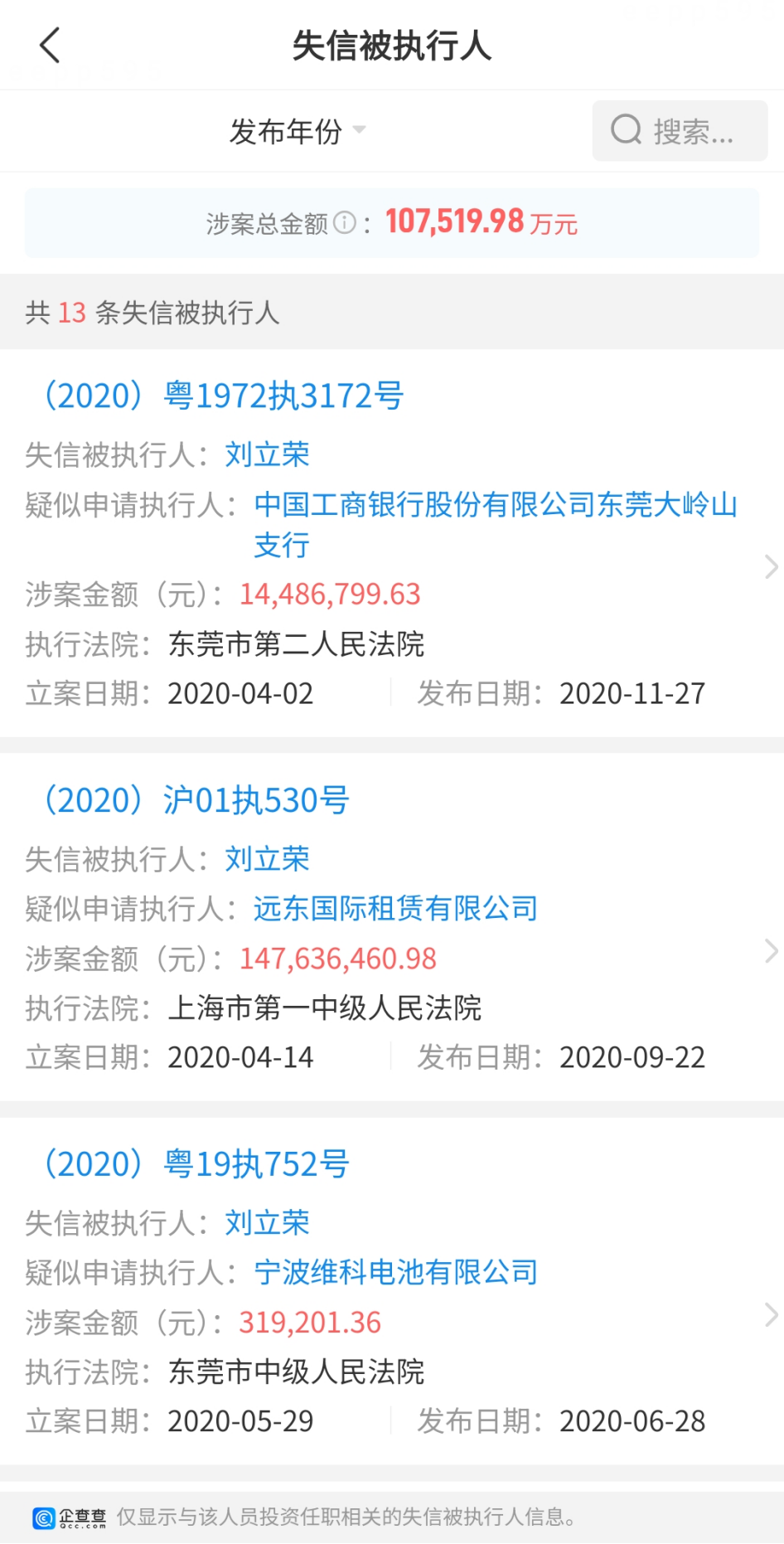 和金立还在“吊着一口气”不同,刘立荣本人彻底消失了。