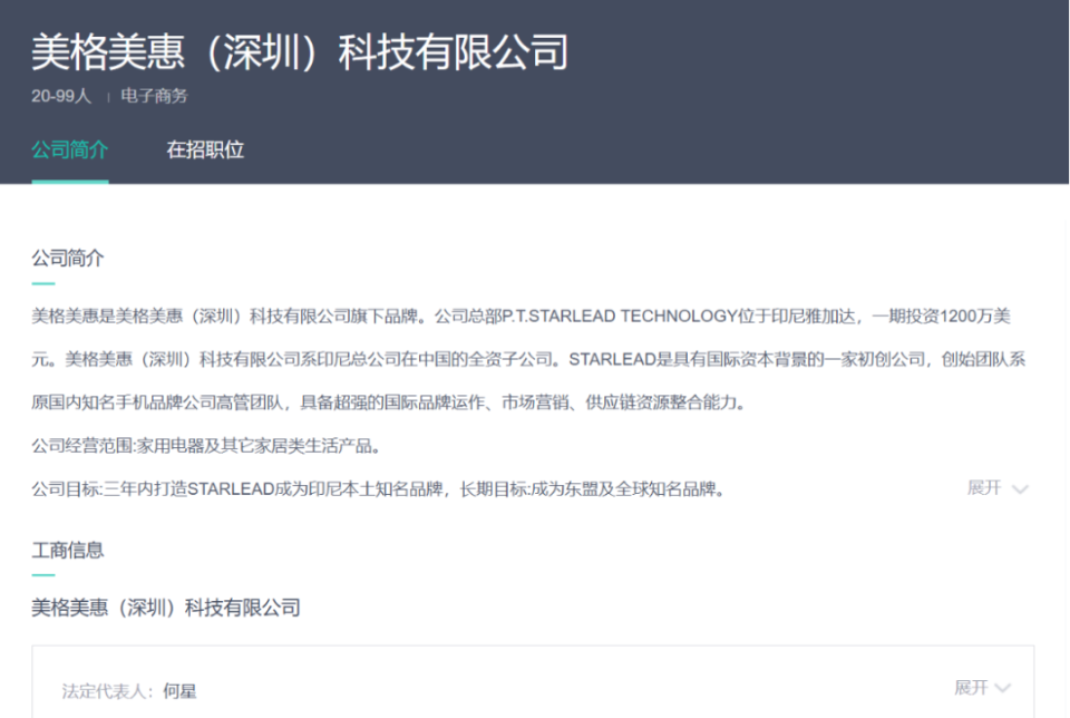 目前,Starlead 已在国内设立分公司,即美格美惠(深圳)科技有限公司,企查查信息显示,何星为该公司第一大股东,持股比例达 50%。