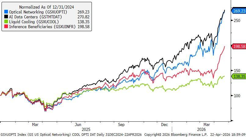半导体、服务器、网络设备和数据中心设备这条产业链,仍然最直接跟随大厂投入走。近期软件和芯片已走出分化,说明市场在这条主线里开始向离订单和基础设施更近的方向聚集。若四家财报继续确认需求和资本开支强度,这种分化只会更明显。