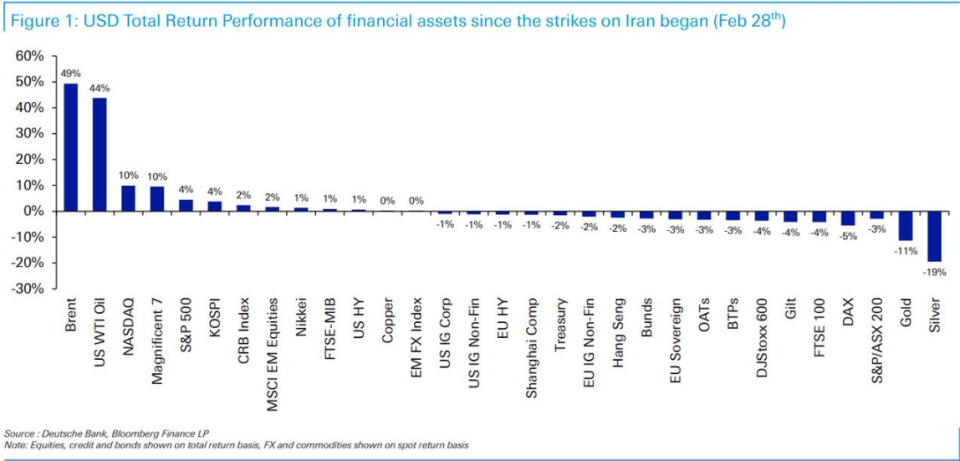 德意志银行策略师Jim Reid对主要金融资产进行了系统梳理,结果显示:部分资产走势与传统石油冲击剧本高度吻合,但也出现了若干出人意料的背离。