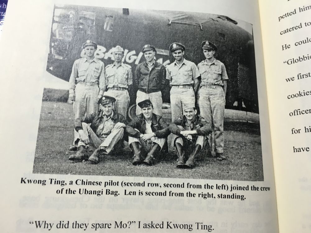 中译:飞行员邝廷(华人)第二排左二加入Ubangi Bag(B-24重型轰炸机)作战行列。 。第二排右二为作者罗宾森。