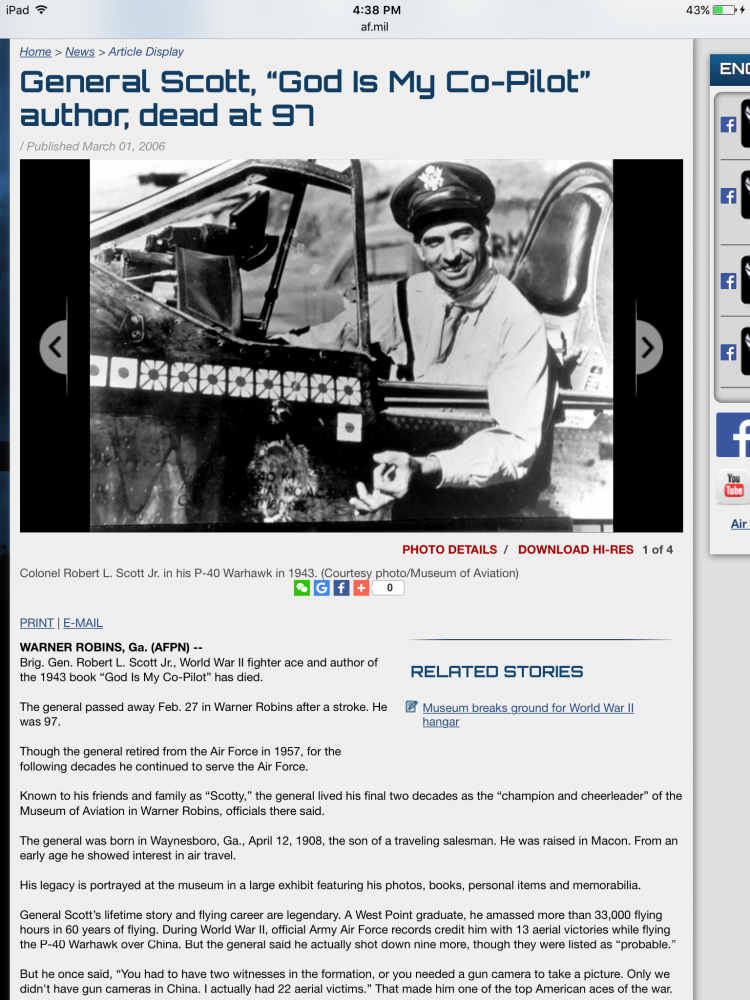 年轻时曾服役于CATF飞虎的史考特将军(Robert Lee Scott),将该队的英勇事迹著成《上帝是我的副驾驶》(God Is My Co-Pilot)一书,并在1945年间由华纳兄弟制片公司拍成著名飞虎电影;叧被誉为「一趟驼峰,一趟鬼门关」的驼峰死亡航线,二战后在美国也出了不少相关书籍及影片。