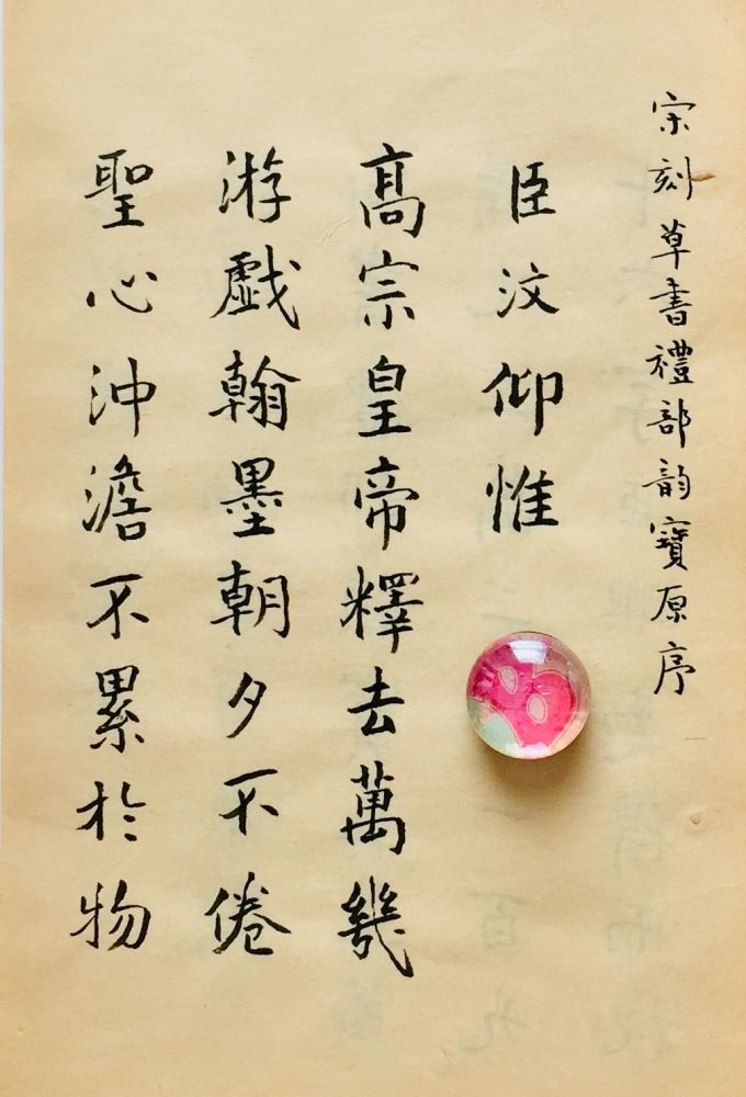父亲手抄的卷首,有宋刻湖州刊本陈汶的原序,“高宗皇帝释去万机,游戏翰墨,朝夕不倦。”
