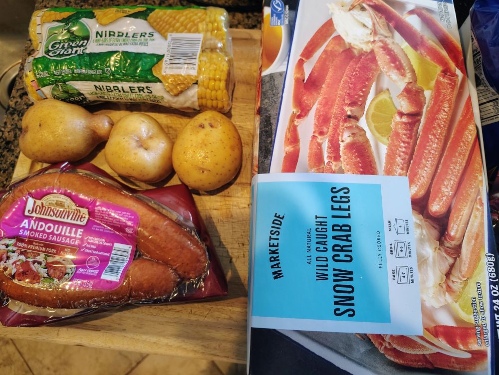 配菜基本照着饭店 seafood boil 来的,海鲜嘛就是店里有啥就用啥