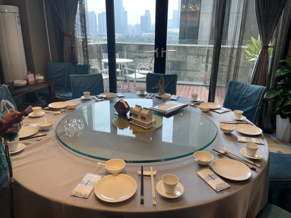 房间是这样的, 还真是胡总说的每人都有黑白两双筷子的