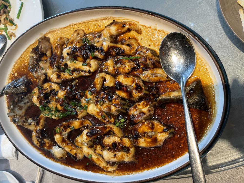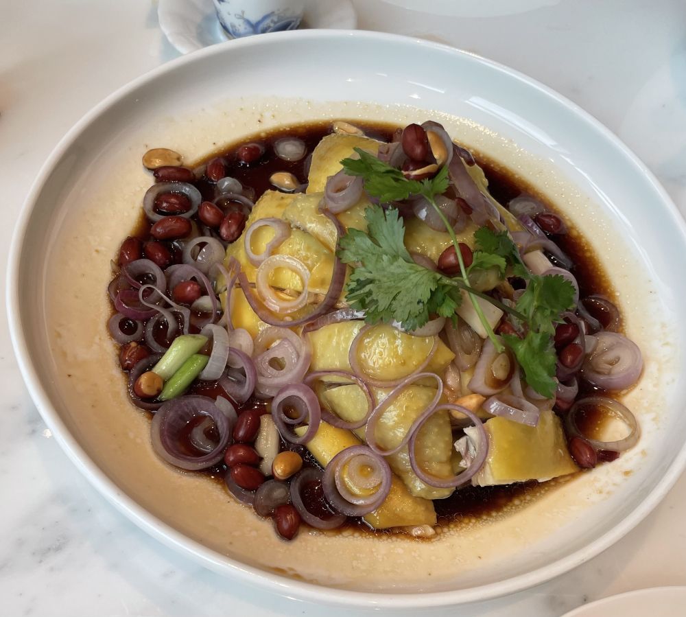 我那天点的葵花鸡没拍, 用另一天和姐姐外甥女吃饭时点的葱油鸡顶上。 那天我还叫了芝麻糊作为糖水, 也是没拍