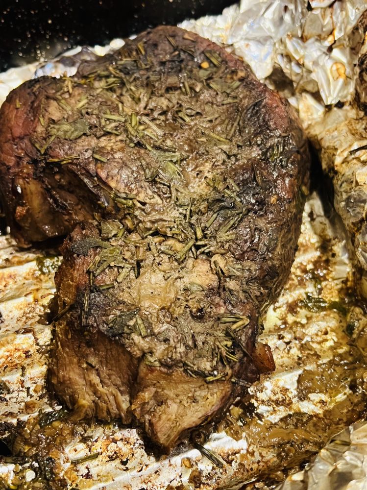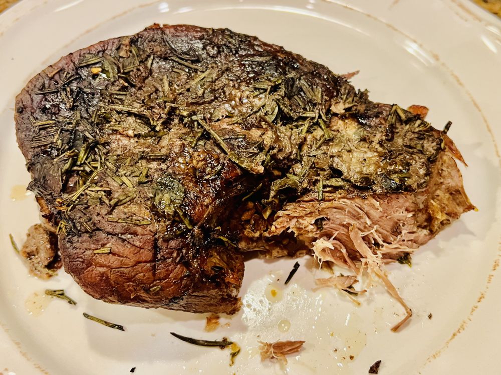 我觉得还是直接在锅里煎牛排好吃,这个而且加了很多迷迭香和牛蒡(都是家里种的现採的)