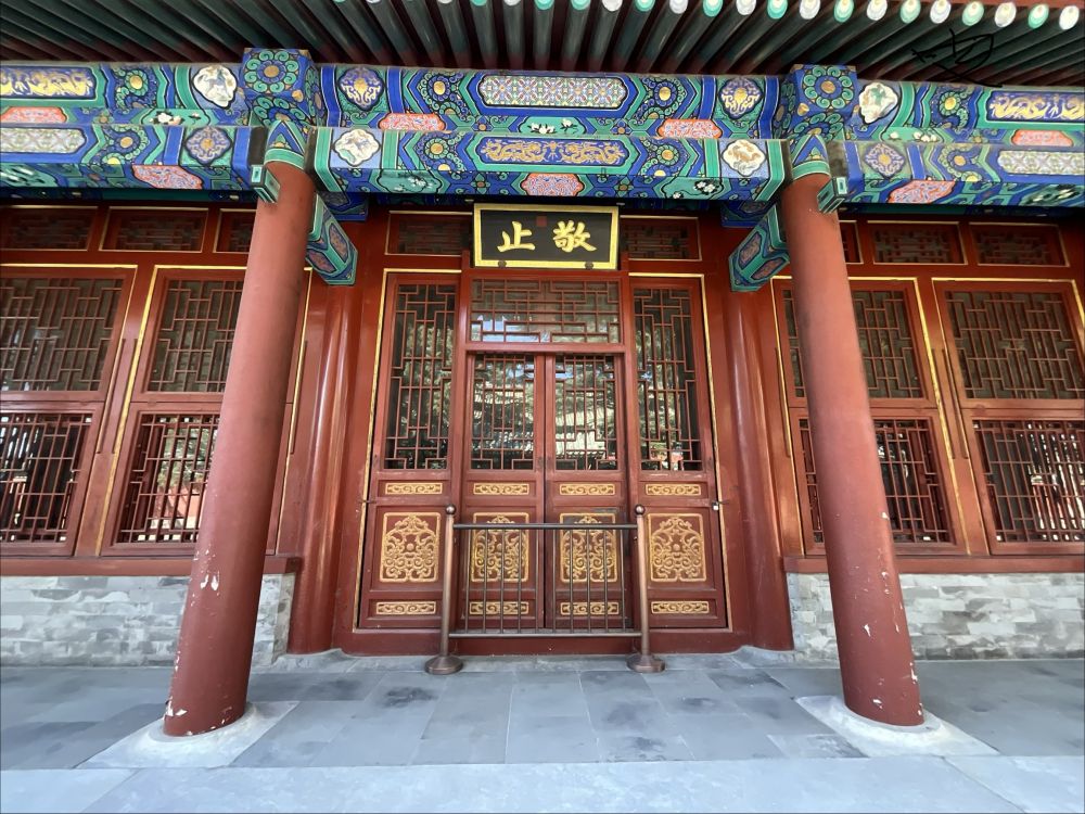 既然公园内的主建筑群基本都不能如意入内参观,那就既来之则安之,去附属建筑群,斋宫。我喜欢天坛公园的宽阔平坦,小孩子们可以在这里尽情地跑来跑去玩儿耍,老人们也可以坐在林荫道旁的椅子上休憩片刻。虽然有游客不停地擦身而过,但是不像在其他封闭式公园里那样感到拥挤和疲惫。