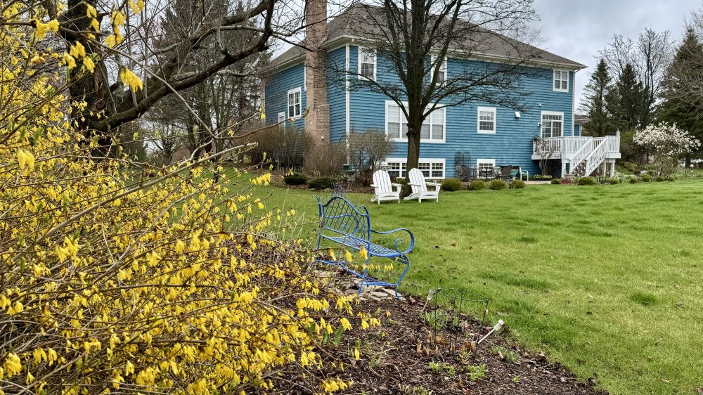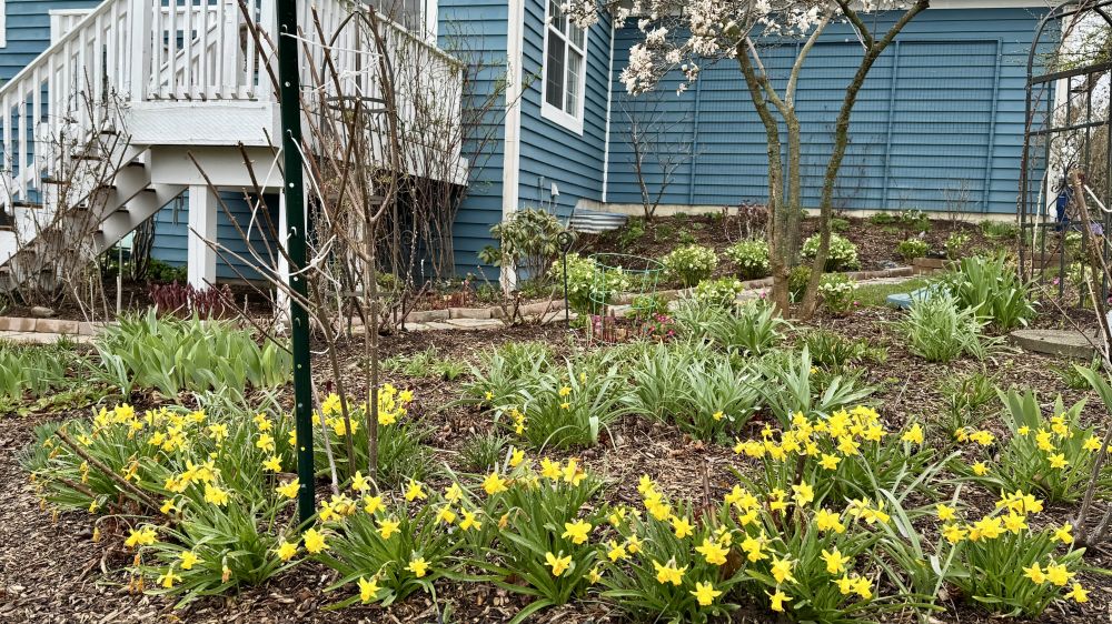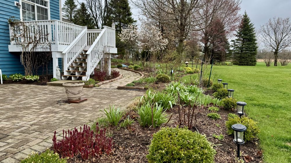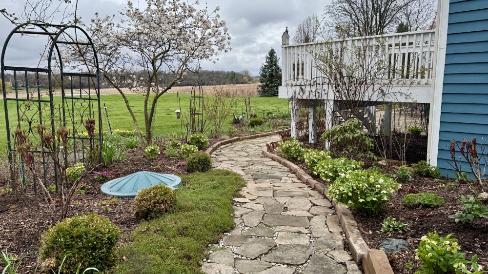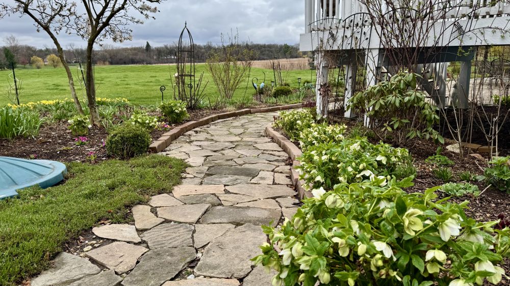 我也非常喜欢Hellebores,花期长不需要怎么打理,有70多棵。大藤是金银花。