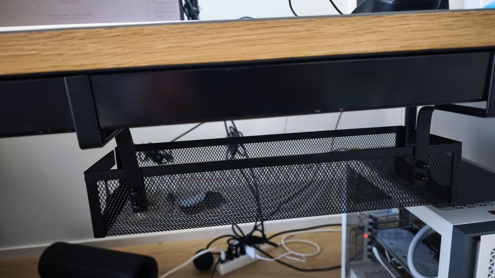 刚坐下一会, 女儿就给交代任务了:  自己的写字电脑桌子, 后面的电线,插座太乱, 网上买来一个网筐, 准备固定在桌子上, 电源插座板,电线啥的, 可以放在里面。