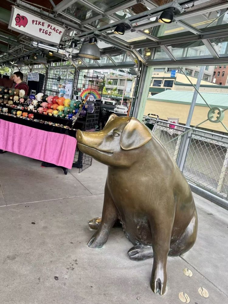 Pike Place Market 派克市场,全美最老的农贸市场,西雅图最重要的观光景点。必须摸摸吉祥物金猪沾点好运^^