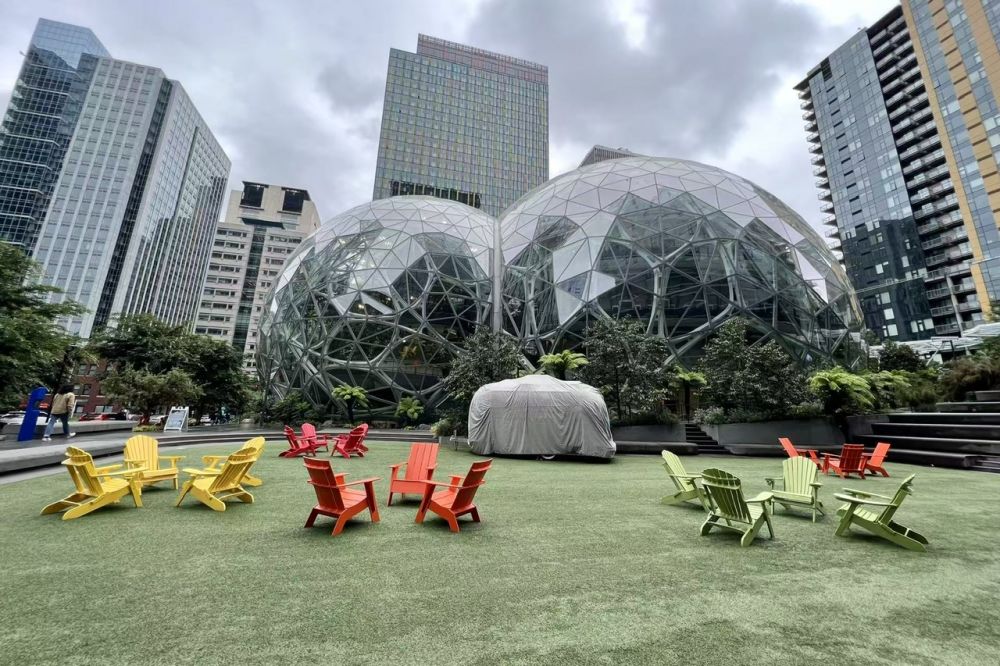 Amazon Spheres亚马逊球体很美,周围的办公楼林立,进去Amazon Go无人便利店看看,还有看到下午五点左右路边排队坐班车的队伍。