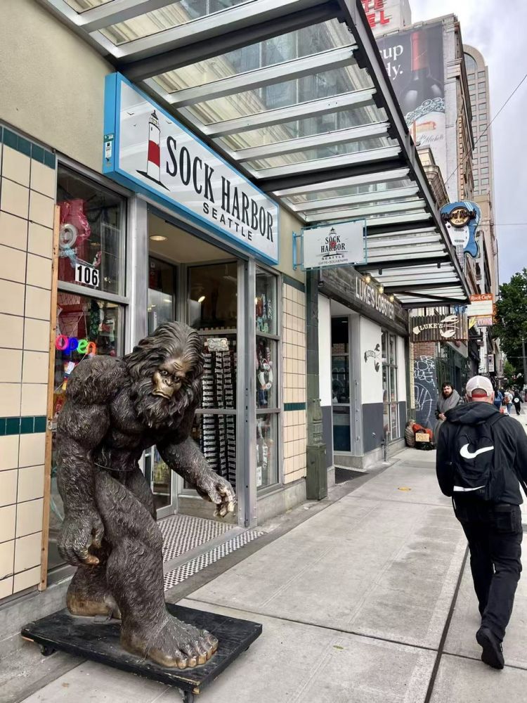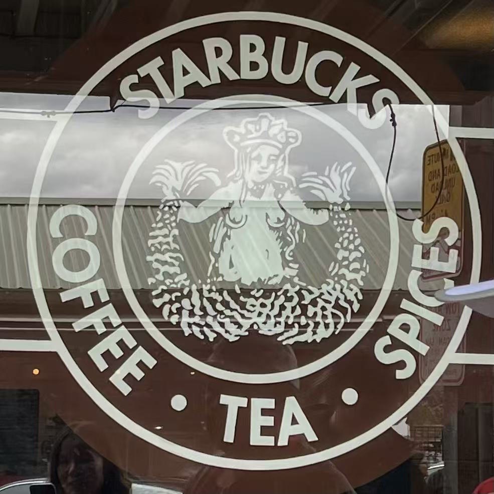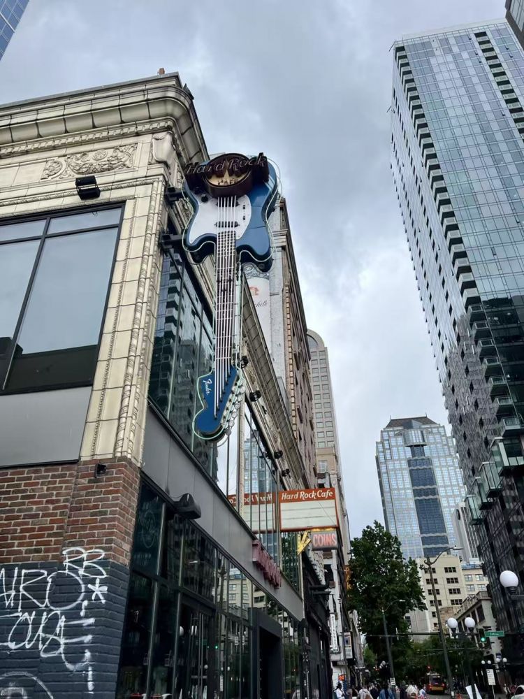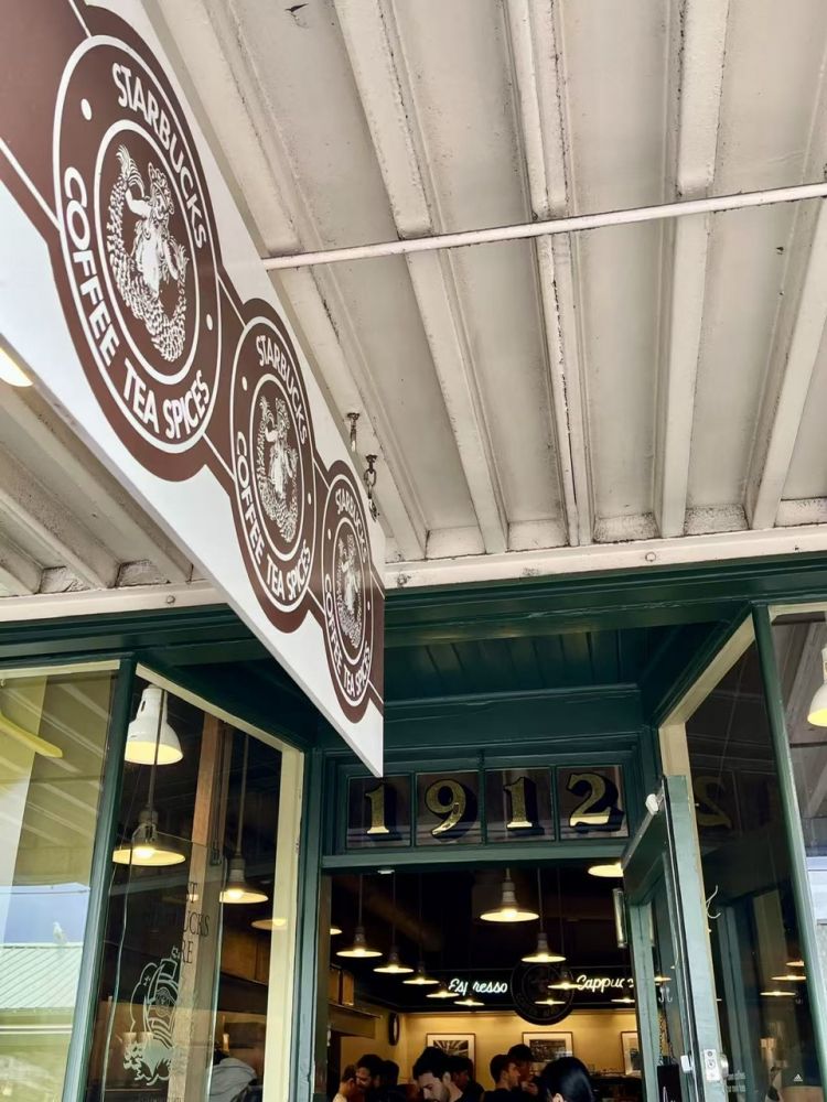 西雅图是星巴克的发源地,星巴克创始店前,人来人往,门口排队,拍下原始Logo纪念一下。