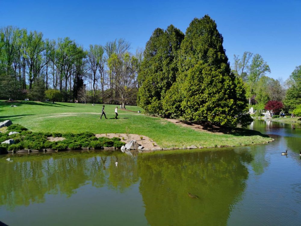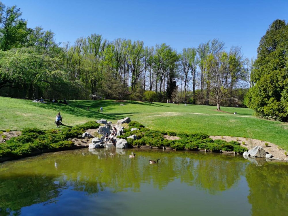 我和太太是和本地一对上海人夫妇相约,乘着春天气候宜人,蓝天白云的,我们来到位于马里兰 Silver Spring(准确说在 Wheaton 区),这是个大型公共植物园,面积大约50多英亩,非常适合我们这样年纪的人,来结伴散步!