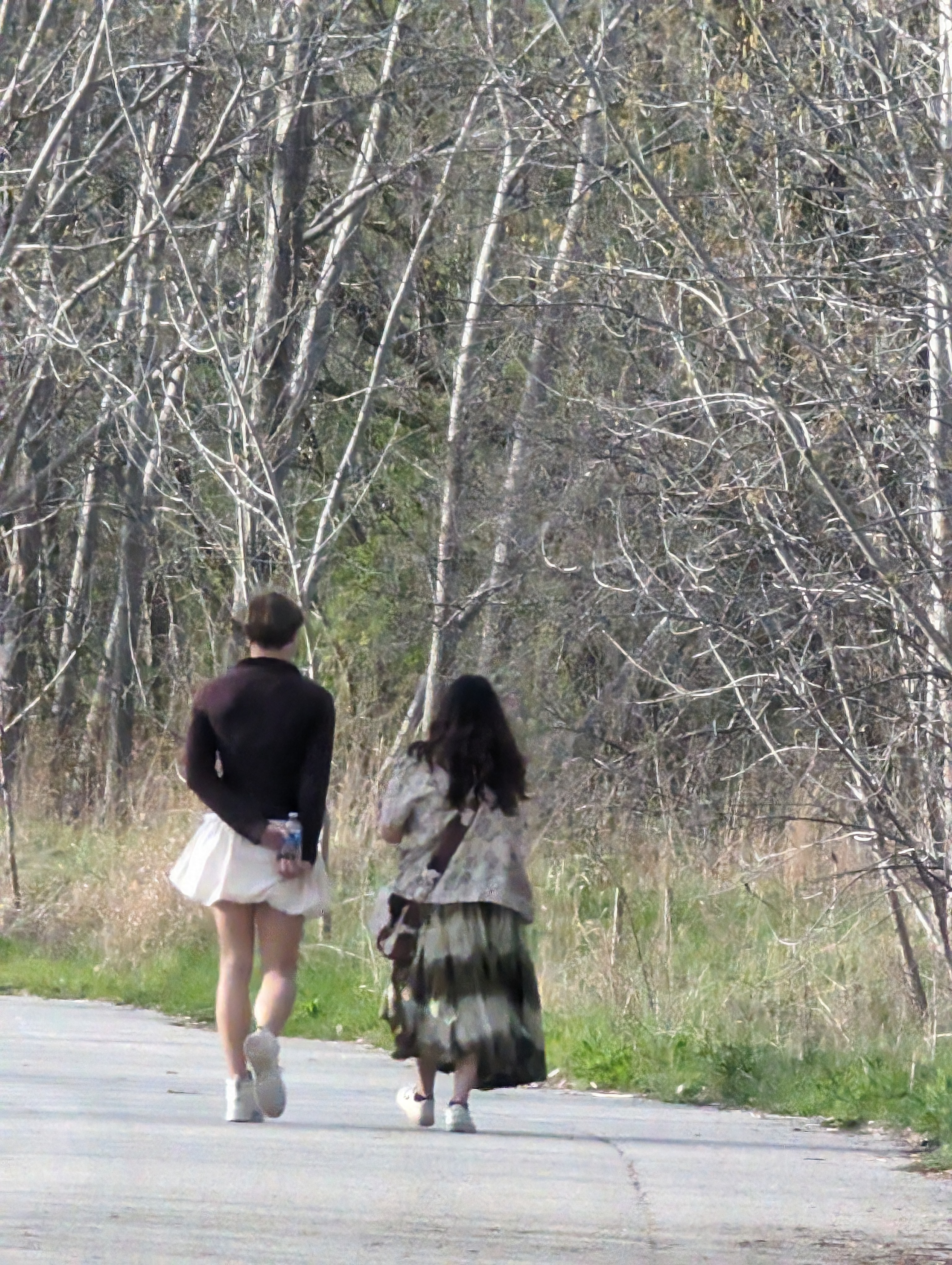 12. 各位看这是两个女孩吧?说来好玩,那天我在拍雨燕,听边上两人说话,像是一对男女情侣,没在意也没回头看。之后我老婆说那个高个穿裙子的女孩开口是男孩声音吓了她一跳,我往她们走的方向看去,就是照片上的这两个