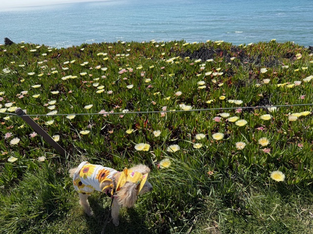 漂亮的海边,可爱花衣狗狗,应景还时尚:)