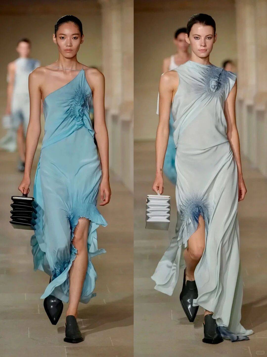 不同于品牌过往标志性的利落简约,这一季她卸下了几分凌厉,将小七身上纯粹的童真与灵动,尽数融入设计肌理之中,让整个系列都萦绕着治愈又浪漫的少女仙气,成为2026春夏秀场中极具情感温度的一笔。