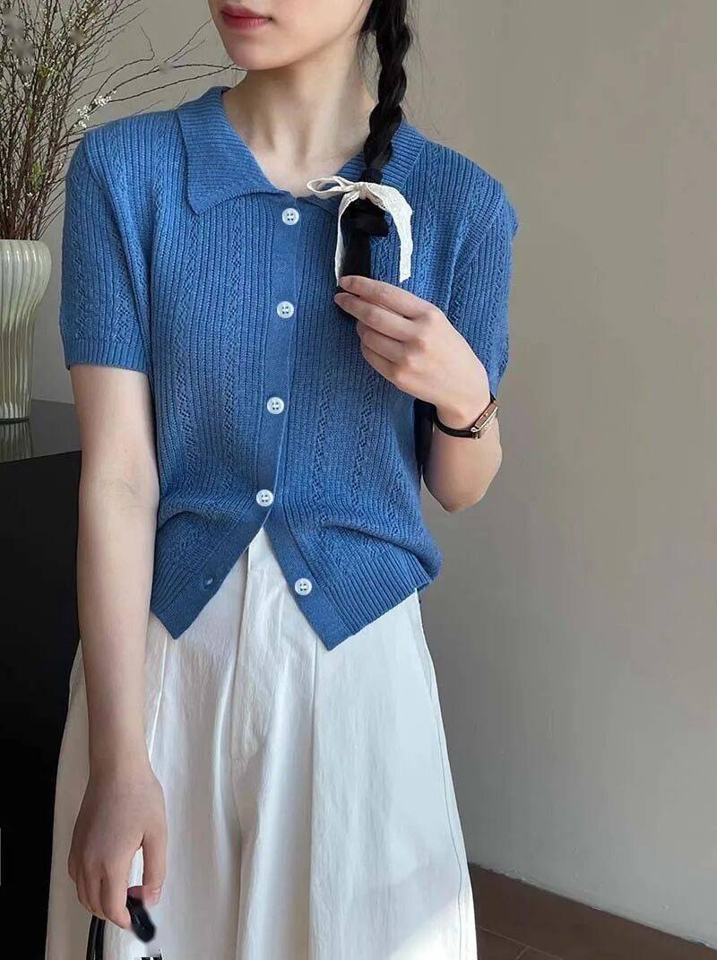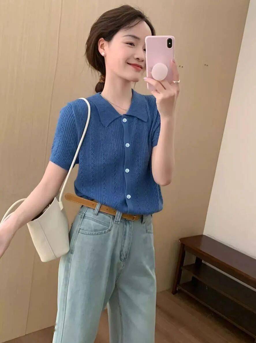 炎热夏日,怎样穿出清爽显白的氛围?这件复古翻领Polo短袖针织衫,轻松拿捏韩系千金般的贵气感。上身自带一种不费力的松弛感,轻松穿出纸片人既视感,将夏日的灵动与知性诠释得恰到好处。