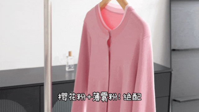 有樱花粉撞云雾粉一色可选:它不是那种甜到发腻的嫩粉,而是带着一点灰调的知性粉。云雾粉在袖口和领边晕染开来,像薄雾笼罩下的樱花林,是行走的贵气感本人,温柔显白不挑人。