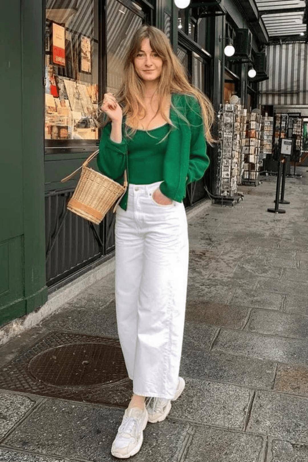 穿腻了千篇一律的牛仔裤,你也可以用小白裤来和奶奶衫搭档。