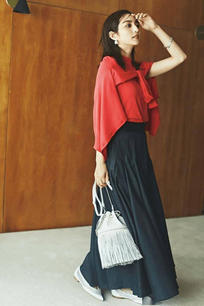 无论搭配刚才的针织衫,还是随意搭件T恤,它都能让你在婉约与松弛之间达到平衡,将柔美自然释放。