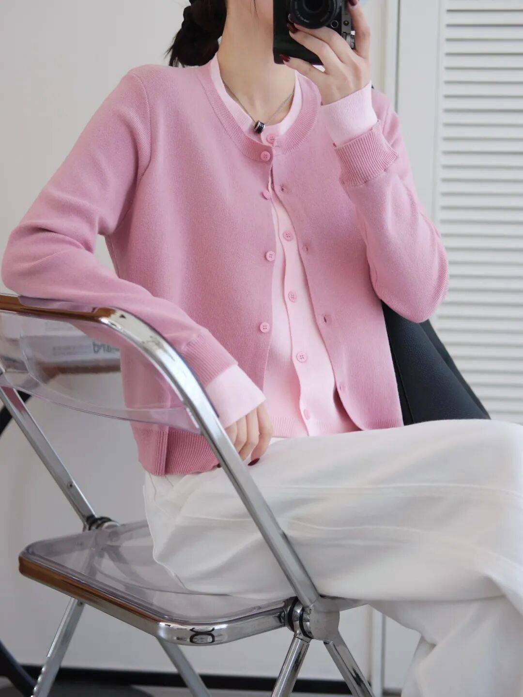 乍暖还寒的时候,单穿这件刚刚好,不用费心叠穿。午后的阳光穿过自带滤镜,低饱和的粉色氛围感拉满。
