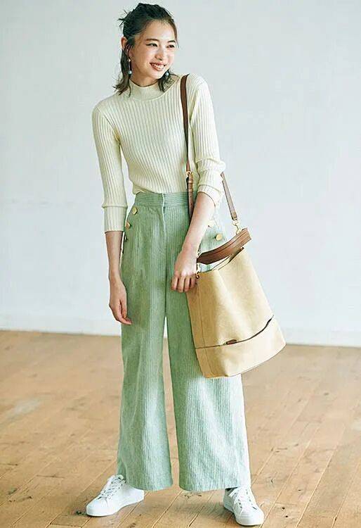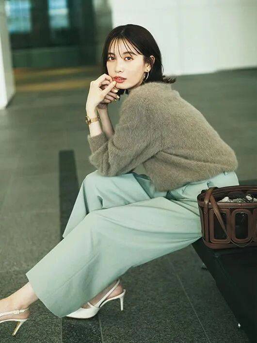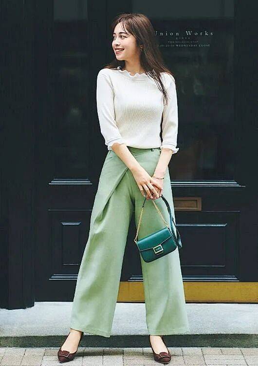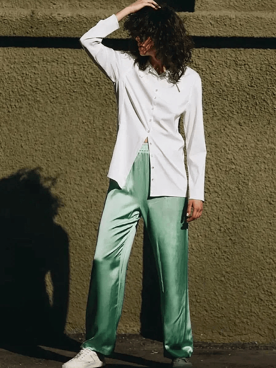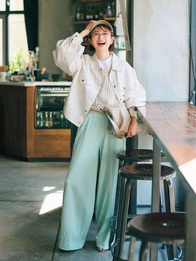 鼠尾草绿的阔腿裤,自带冷静气,保留了一点点蓝色的冷静和黄色的微暖,安静、克制、也很有分寸感。