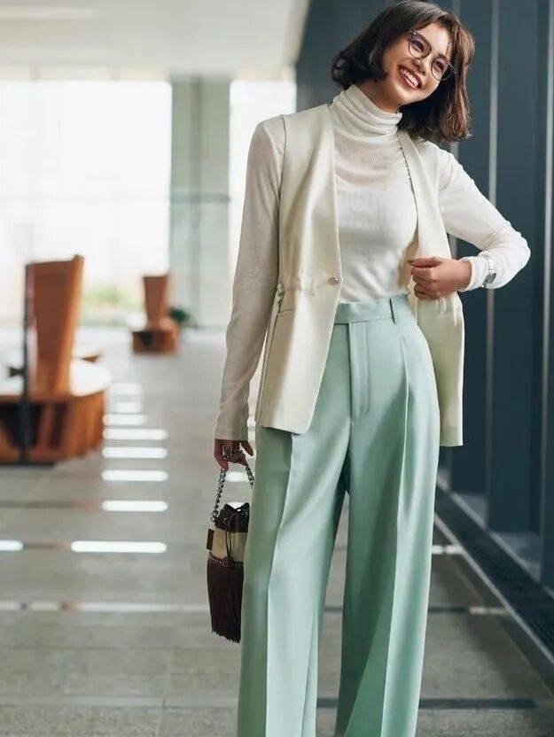 比起紧身裤的干练、小黑裤的保守,彩色阔腿裤让你看起来更懂生活、有生命力,且非常减龄。