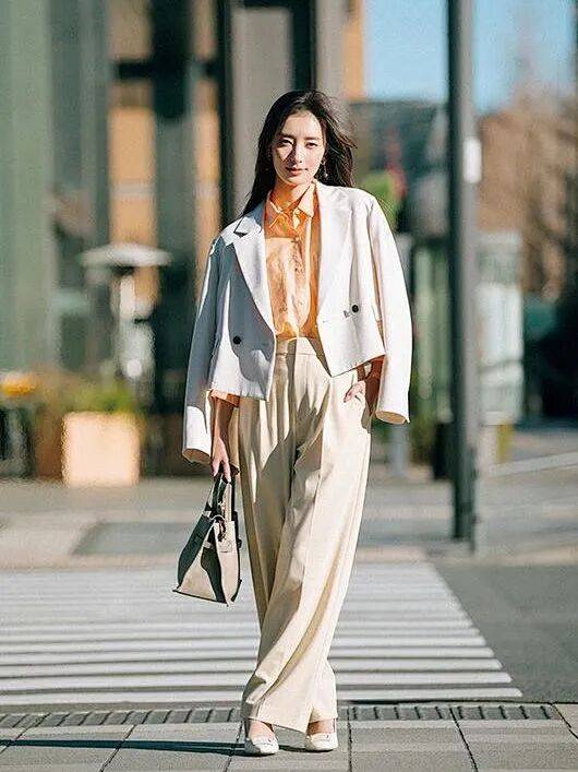 不必担心它的场合适配度不高,搭配白色西装外套或上衣,一样可以很智性干练,甚至一改往日黑白灰的沉闷,给人眼前一亮的美。