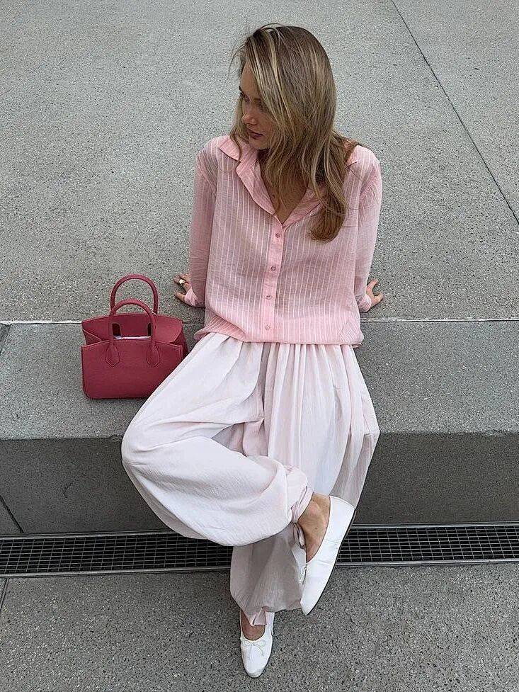 你会在平凡的一天里,被一条柔雾粉阔腿裤而治愈。