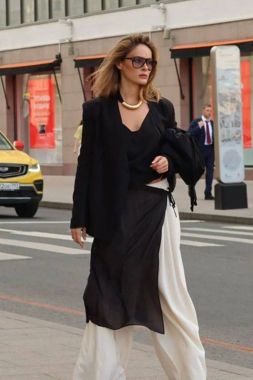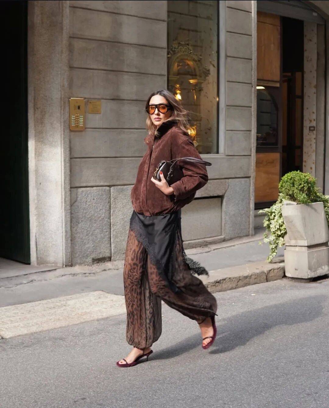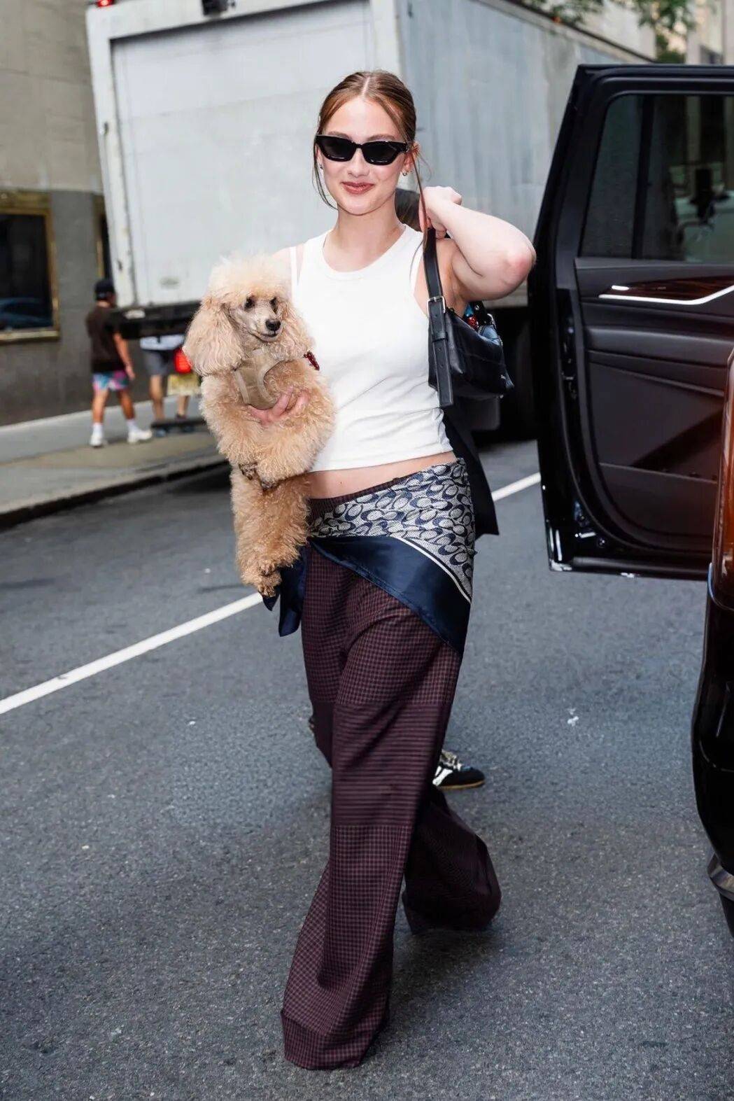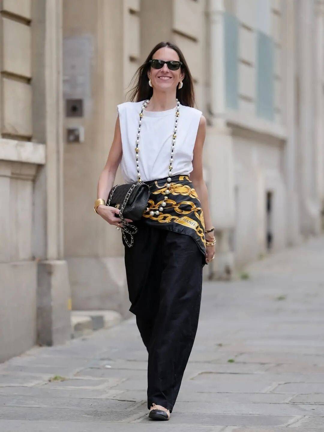 也不是非得买新裤子才能跟上这股流,用手边喜欢的裤子搭配丝巾或裙子,也能轻松打造wrap trousers的造型。