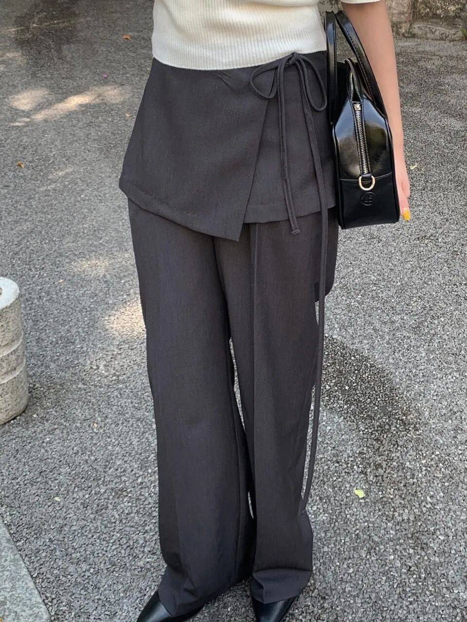在传统长裤的基础上增添裙片的设计,就是裙裤式wrap trousers了!