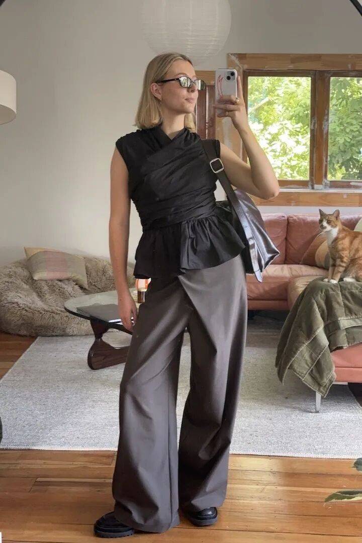 wrap trousers之所以让人一试就爱上,其中一个原因就是超简单的搭配逻辑。