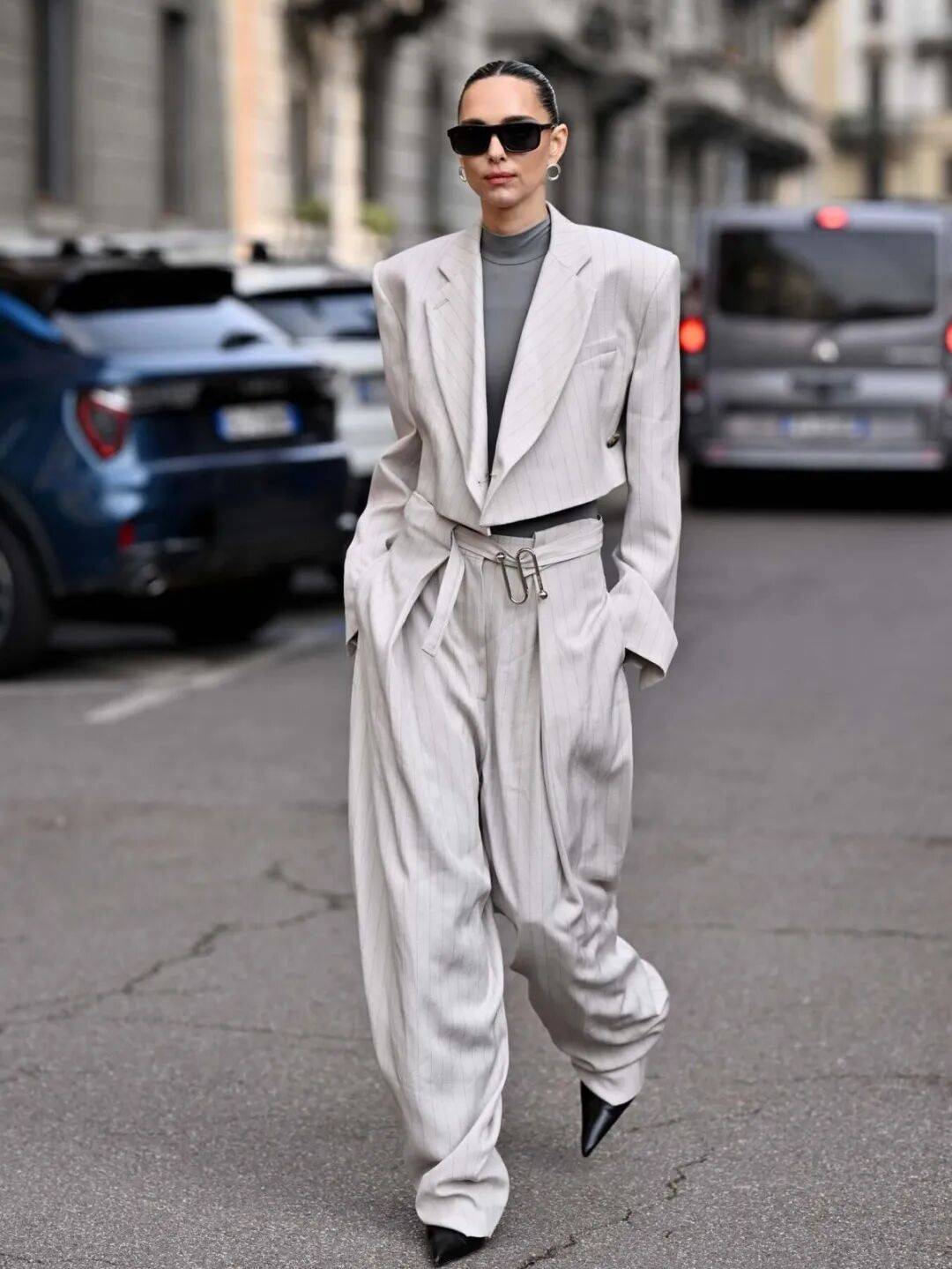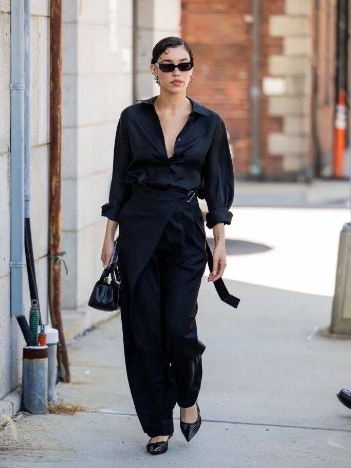 尖头平底鞋、窄版乐福鞋,或者一双简约的芭蕾舞鞋,都能给整体轮廓画上一个干净利落的句号。