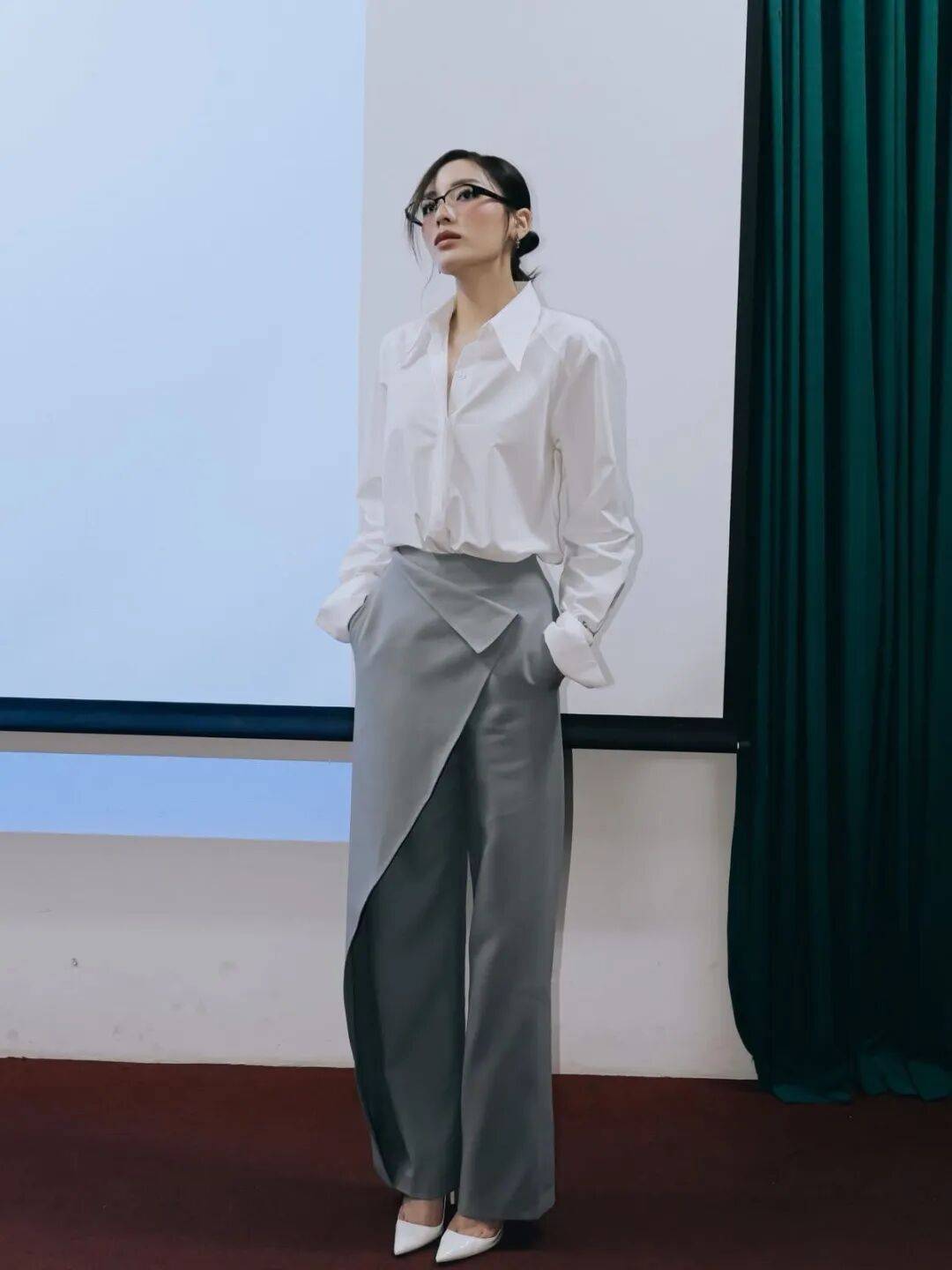 侧开叉款则更加内敛,行走时裙片自然分开,露出内里的裤管,动静之间多了几分不经意。