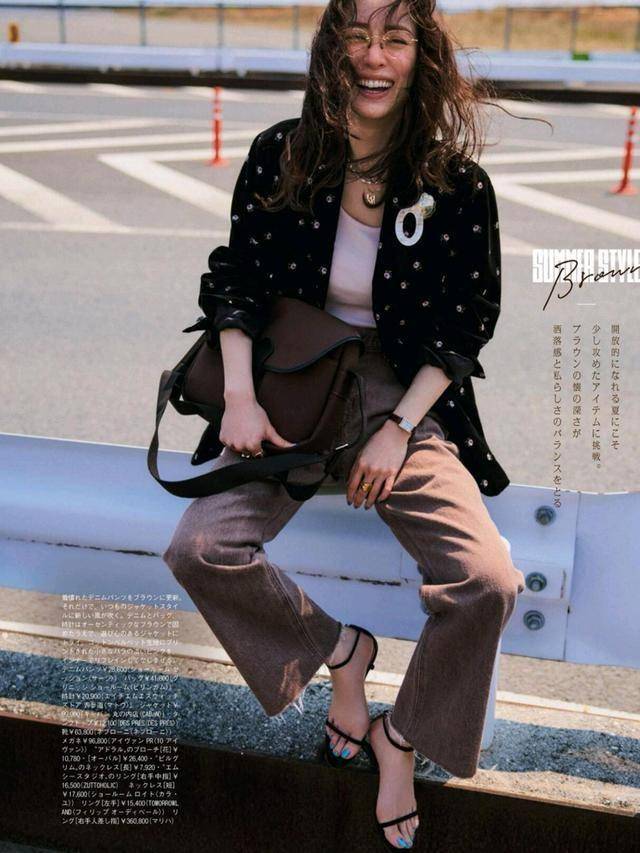 穿的干净利落一点,好气质才能散发出来,咖色牛仔裤配黑西装,丝绒和牛仔的碰撞,低调又显贵。