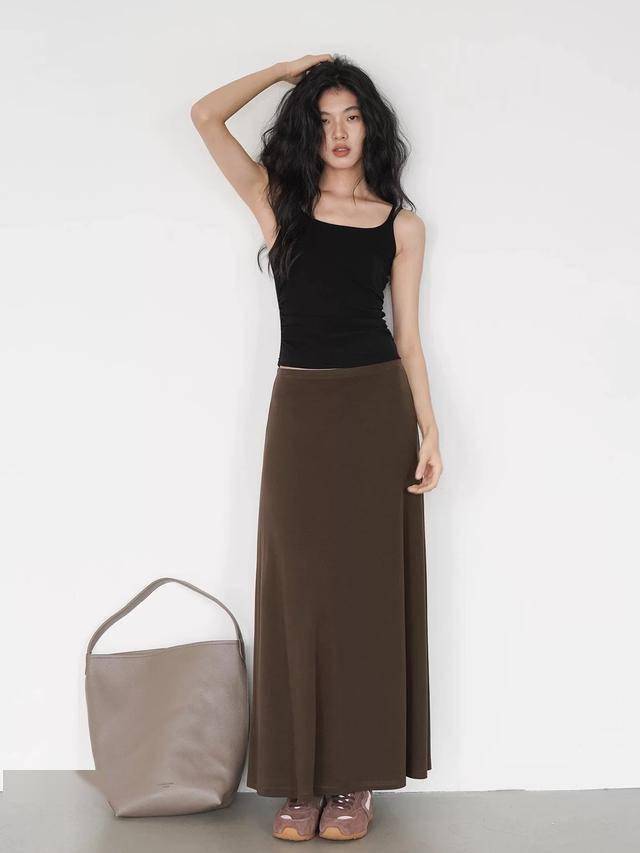 好身材就是要秀出来,黑色的修身吊带配咖色及踝裙,勾勒出绝美曲线,越极简的搭配模式,反而越有吸引力