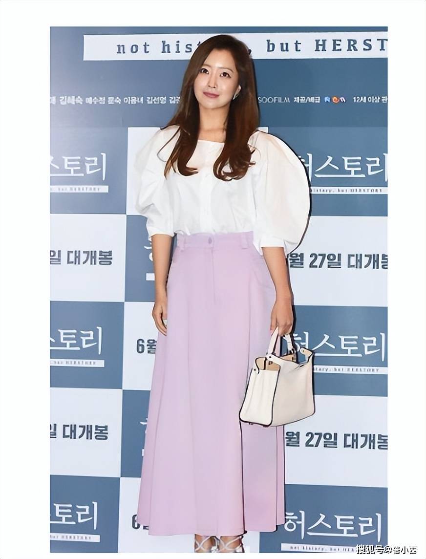 想要走温柔风,咱们可以试试衬衫搭配半身裙,金喜善这一身搭配中,上衣选择了一件纯白色泡泡袖衬衫,没有多余的印花与设计,却把细节玩到了极致。方领的设计恰到好处地露出锁骨线条,弱化了脸部的圆润感,泡泡中袖巧妙地遮住了手臂的拜拜肉,自带复古气质,再加上衬衫的面料挺括不软塌,不会贴在身上暴露身材问题,又能撑起造型的立体感。