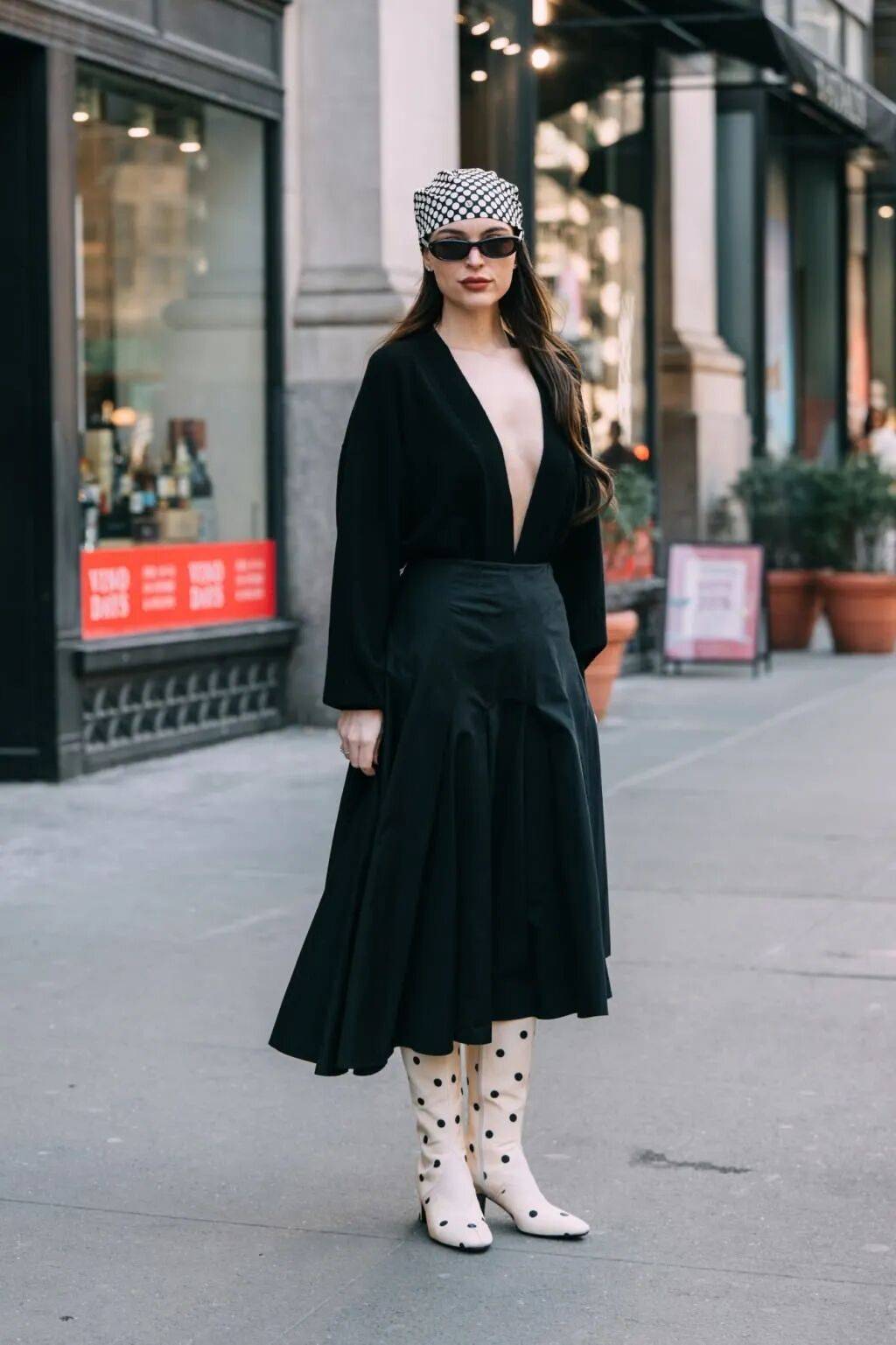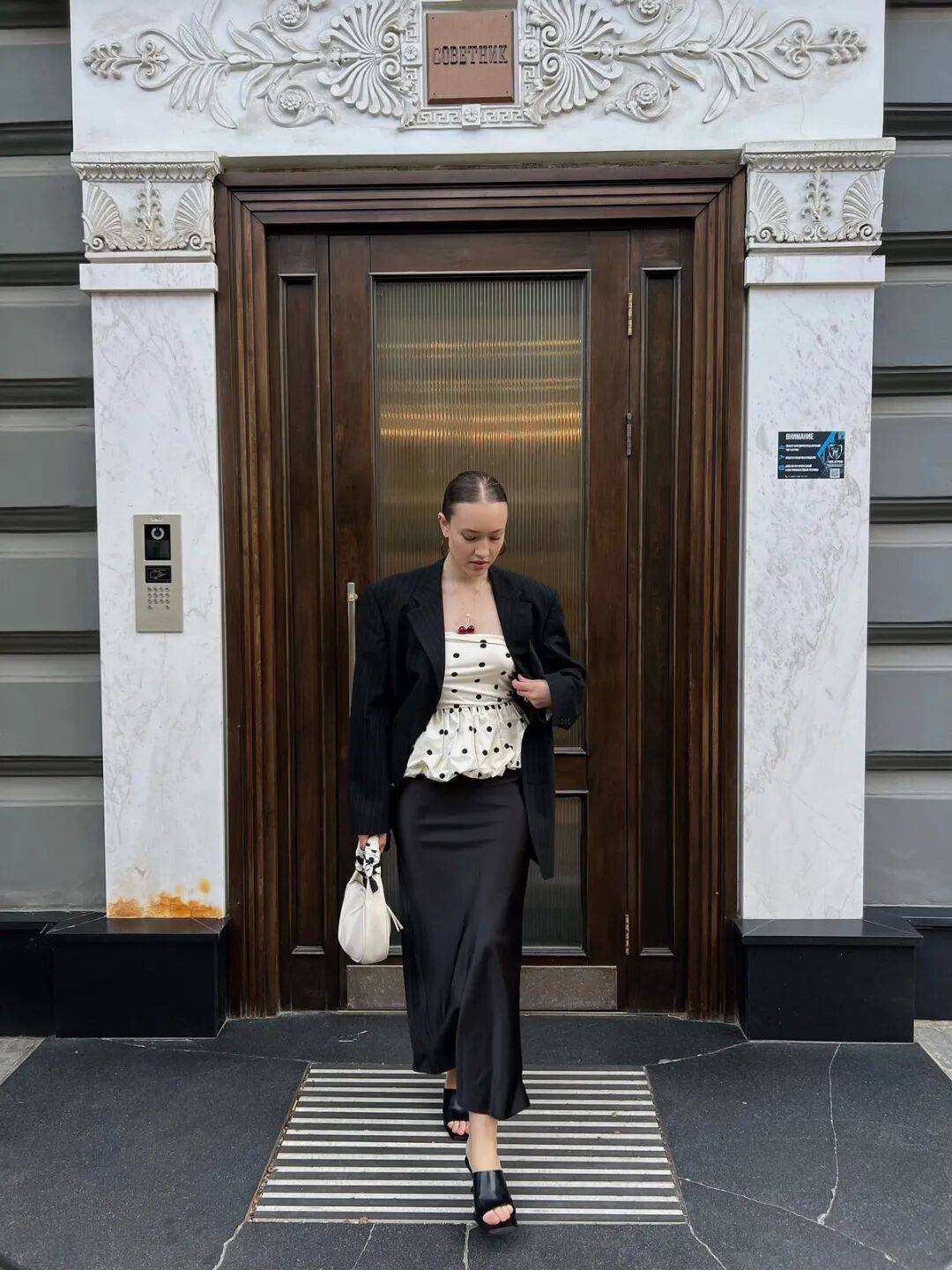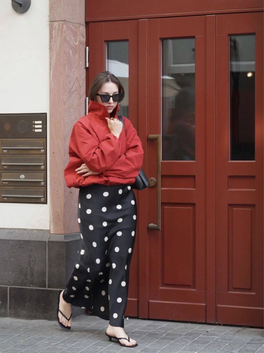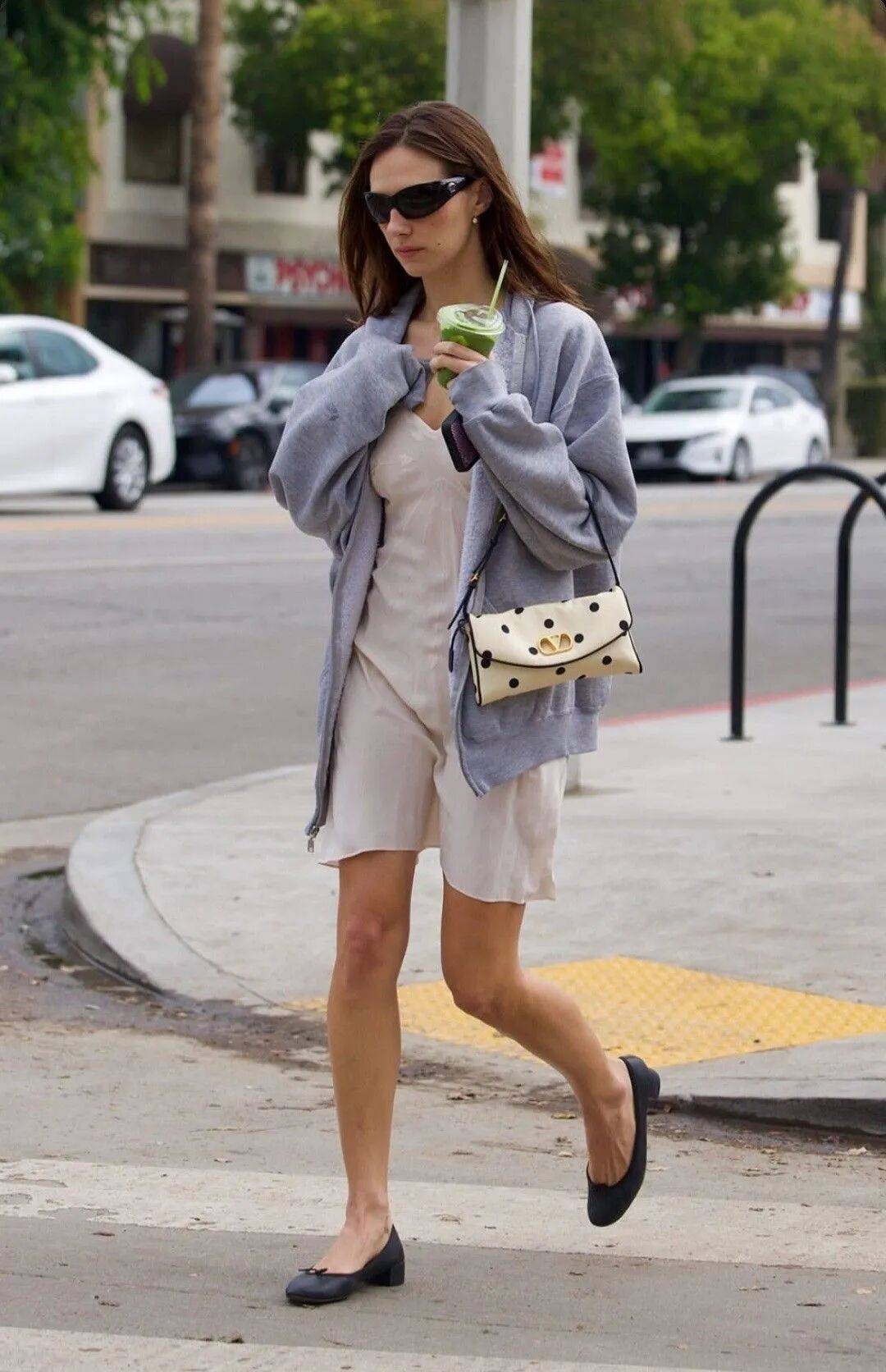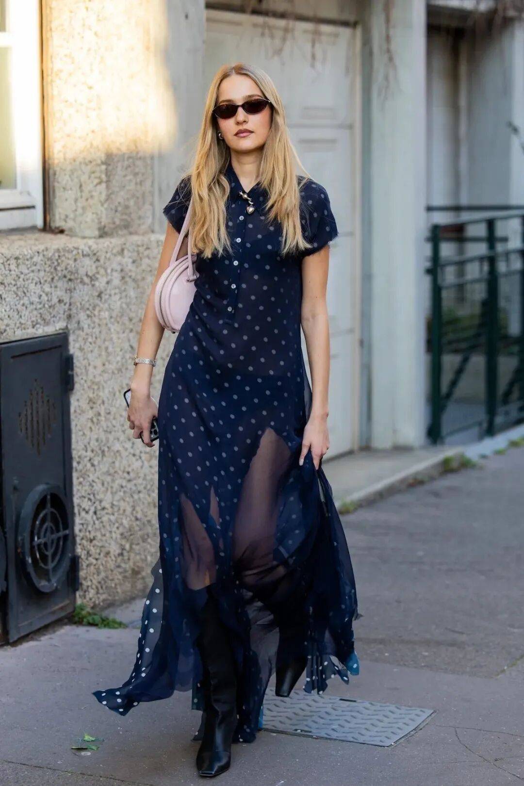 包包和鞋子上同样能见到波点的身影,为整体造型增添恰到好处的趣味。