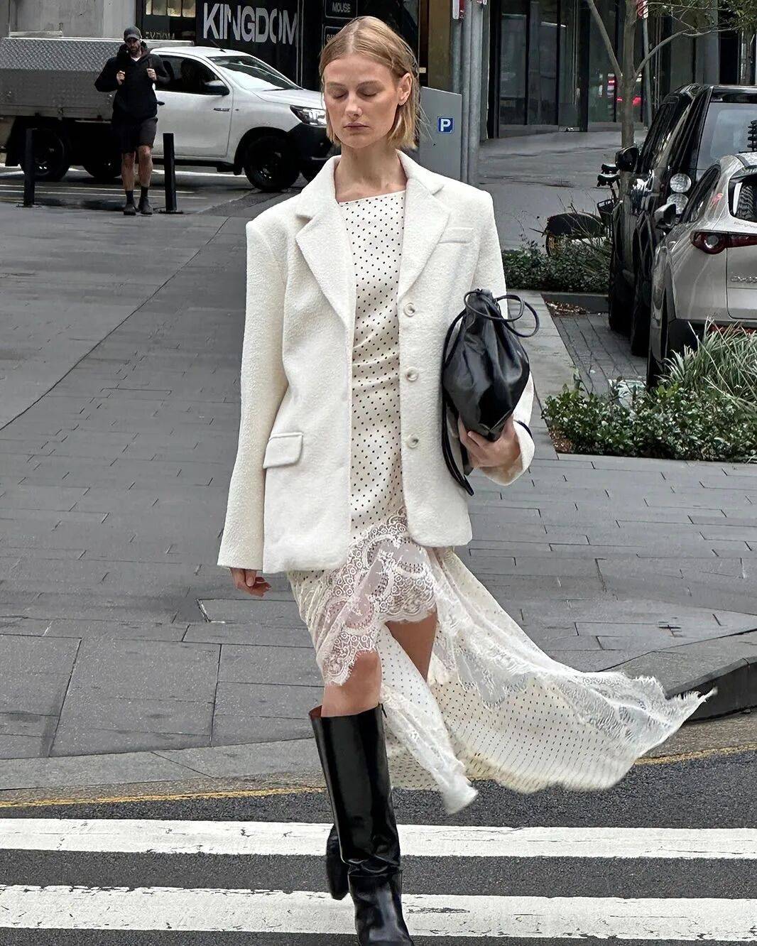 这种细腻变化让波点在复古之上多了灵动。搭配时不需费力,一件波点蕾丝上衣配直筒牛仔裤,或一条波点薄纱半裙搭纯色针织衫,就能塑造灵动又复古的风格。
