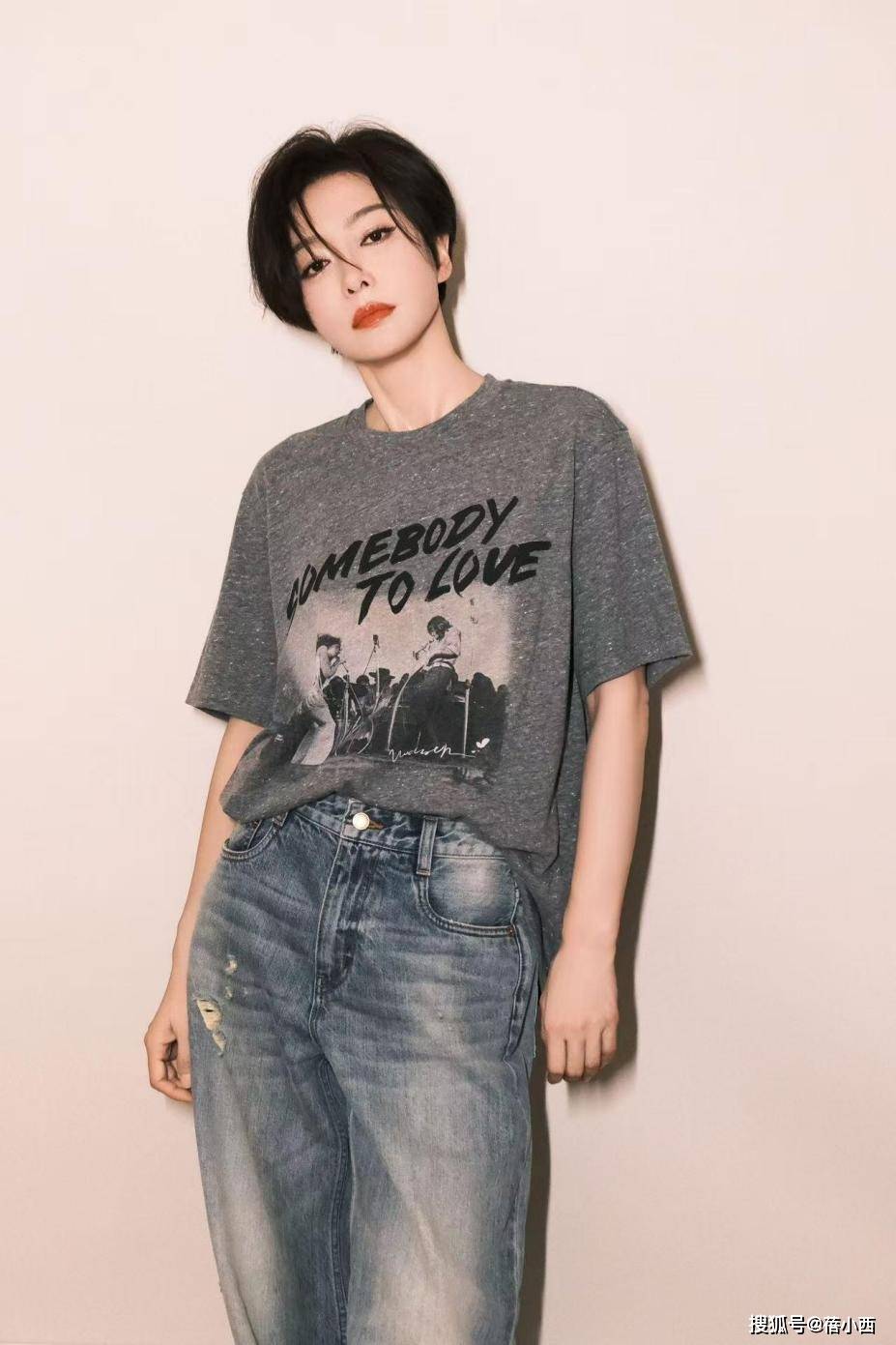 02灰色短袖+牛仔裤